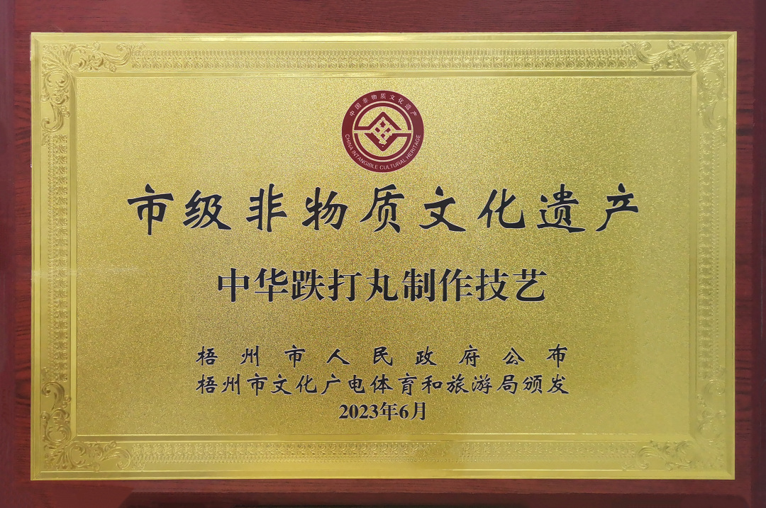近日,在梧州市文化廣電體育和旅游局主辦的2023年“文化和自然遺產(chǎn)日”梧州市主會(huì)場宣傳展示活動(dòng)中,梧州制藥中華跌打丸制作技藝獲授牌匾,成功入選梧州市第六批非物質(zhì)文化遺產(chǎn)代表性項(xiàng)目名錄。