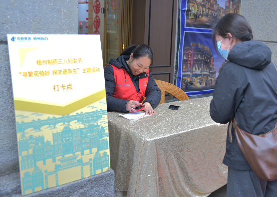 活動(dòng)現(xiàn)場(chǎng),女職工們?nèi)宄扇海┧笥隍T樓城的大街小巷,感受百年騎樓的獨(dú)特魅力,探尋隱匿在歷史深處的非遺文化。在“非遺尋韻‘跌打丸’”任務(wù)點(diǎn),大家紛紛駐足,掃碼觀看《“丸”世傳奇》短劇,深入了解中華跌打丸這一非遺瑰寶的歷史與傳承。蓋在主題卡上的“中華”印章,為這場(chǎng)探索之旅增添了濃厚的歷史韻味。