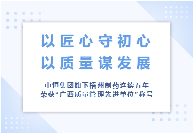 以匠心守初心以質(zhì)量謀發(fā)展中恒集團旗下梧州制藥連續(xù)五年榮獲“廣西質(zhì)量管理先進(jìn)單位”稱號摘要:近日,中恒集團旗下廣西梧州制藥(集團)股份有限公司成功斬獲“2025年廣西質(zhì)量管理先進(jìn)單位”稱號。這是自2021年以來,企
